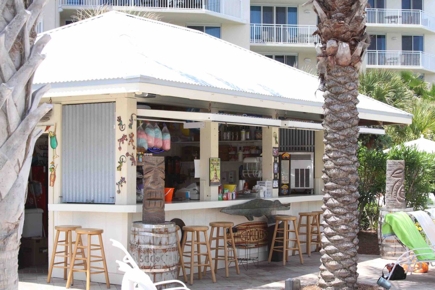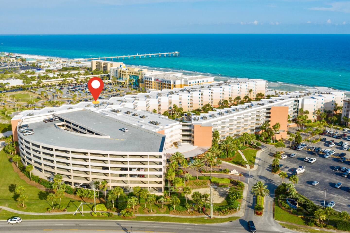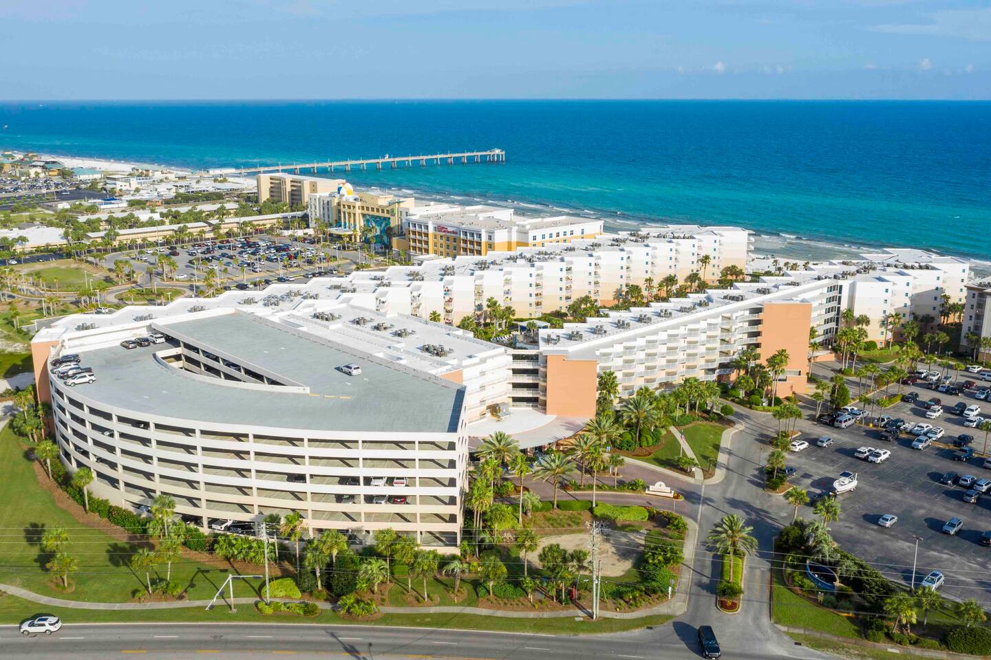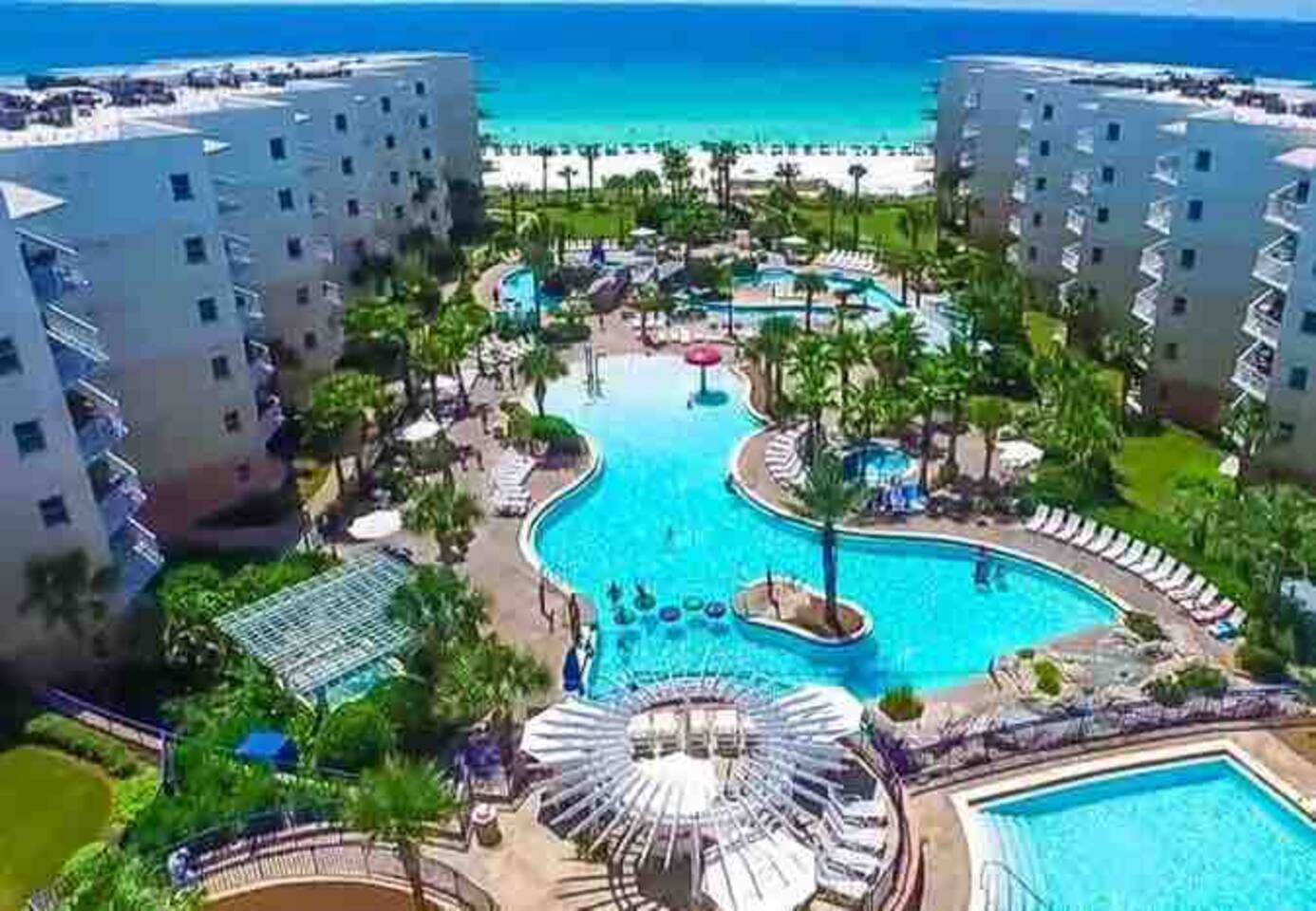 Resort is located directly on the beach! Our condo is a 2 minute walk to the beach and the pools