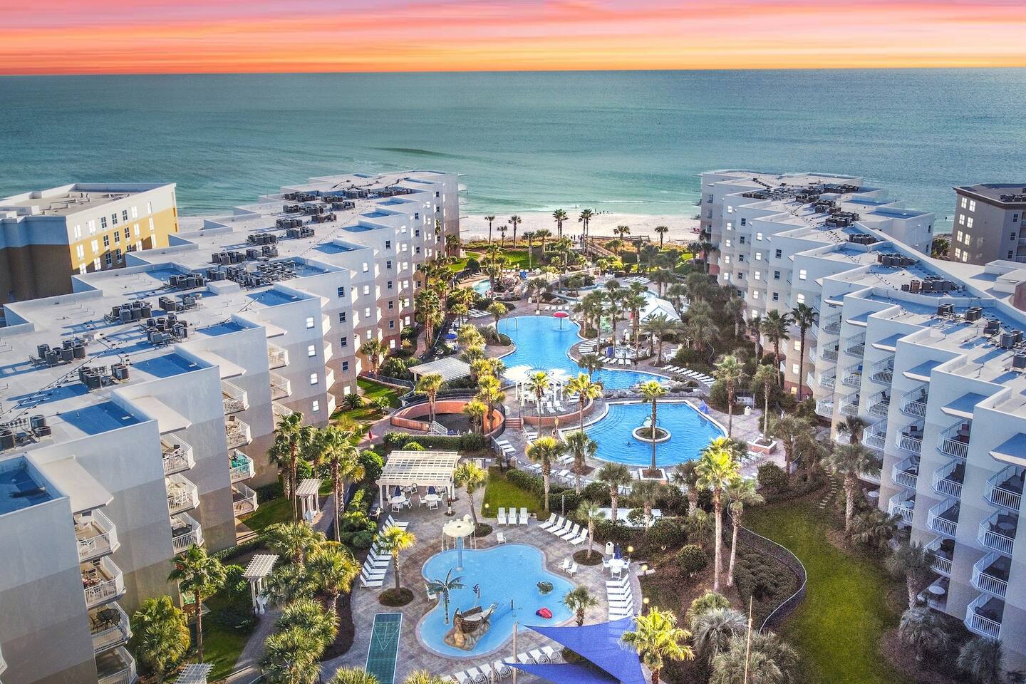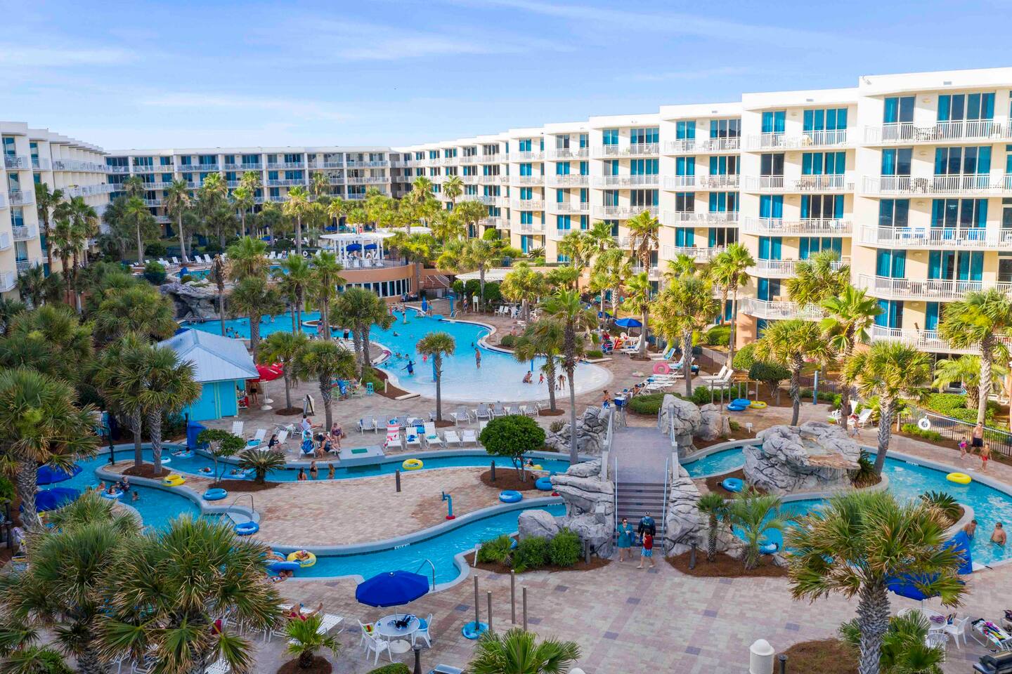 Resort Amenities: • Beachfront access just steps away • Two free beach chairs & umbrella set up daily for your stay • Lazy river, water park-style pools, and a zero-entry pool with a splash pad • Hot tubs, grill areas, and plenty of lounging spots • Lily pad obstacle course and playground for the kids • Kayak & paddleboard rentals included • Fitness center & outdoor community spaces