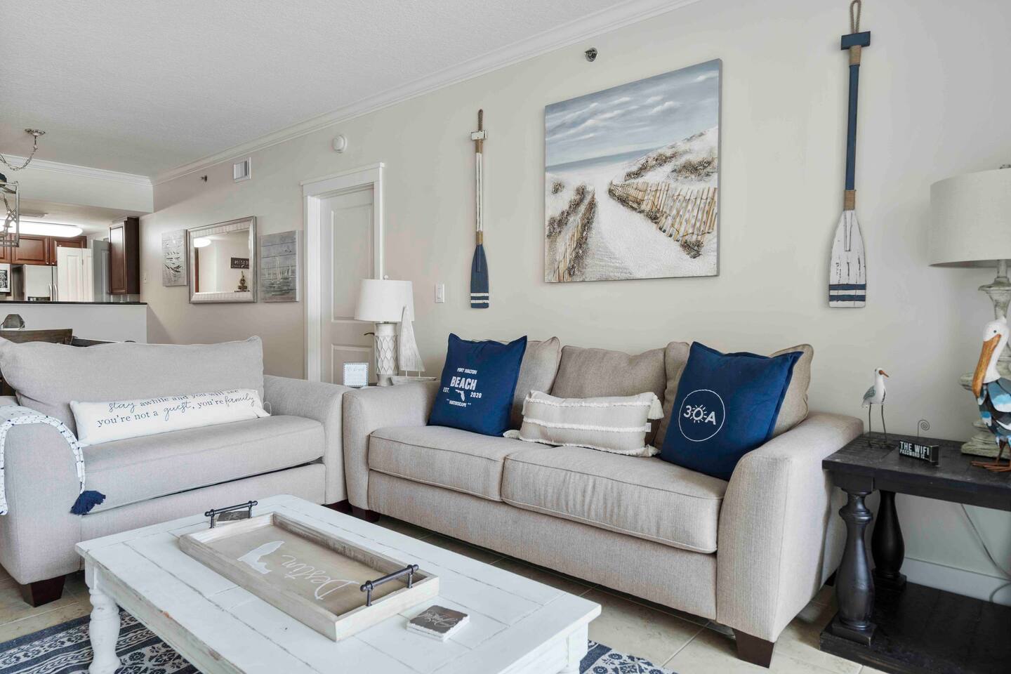 Relaxing Beach Retreat at Waterscape Unit [A127 or A129] Welcome to your perfect beach getaway! This spacious and inviting unit offers everything you need for a relaxing stay with family or friends. The open living room provides ample space to unwind after a day at the beach, with comfortable seating and easy access to a half bath and the Bunk Room, which features cozy twin XL mattresses—ideal for kids or extra guests. The master bedroom is your private sanctuary, complete with a king bed and a luxurious bamboo mattress. You’ll also enjoy a private en-suite bathroom with a stand-up shower, a garden tub for soaking, and a flat-screen smart TV. The second bedroom is equally comfortable, featuring a queen bed, its own private bathroom with a stand-up shower and garden tub, plus a flat-screen smart TV and DVD player for movie nights. Additional features include: • Fully equipped kitchen with everything you need to prepare meals • Washer and dryer for your convenience • Free WiFi and cable • Access to resort amenities like pools, hot tubs, and a lazy river Located just steps away from the beautiful white-sand beaches, Waterscape Resort offers fun for the whole family with its multiple pools, splash pads, and a lazy river. Restaurants, shops, and local attractions are all nearby, making this the perfect home base for your beach vacation!